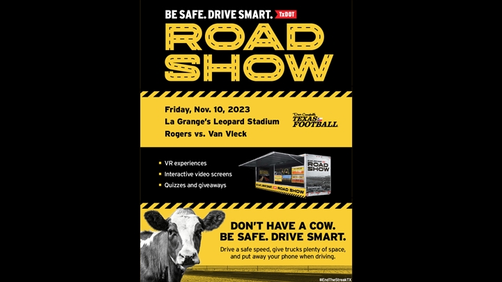 Dave Campbell's Texas Football is proud to partner with TxDOT this season as they roll the TxDOT Road Show into some of the biggest Texas high school football games across the state. Be sure to look for the TxDOT Road Show at the game, where fans can participate in VR experiences, interactive video screens, quizzes, giveaways and much more. TxDOT reminds fans to be careful on the road and follow the speed limit. Slow down when there's heavy traffic, road construction, or bad weather. And always buckle up.