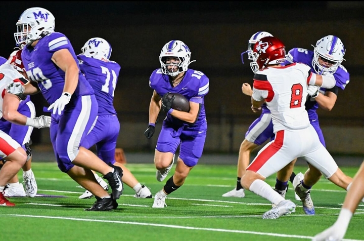 Dawson made the varsity squad as a freshman and served as the primary backup to Makenzie McGill II, now at North Texas. Heading into his sophomore year, the 2023 season, Dawson and his teammates were acutely aware that fans thought they’d suffer a down year. McGill was off to college, and three sophomores were slated to start on the offensive line. The young crew used that doubt as motivation for a breakout campaign. Dawson rushed for 1,629 yards and 25 touchdowns. Mount Vernon made it to the second round of the playoffs, falling to eventual state champion Malakoff.