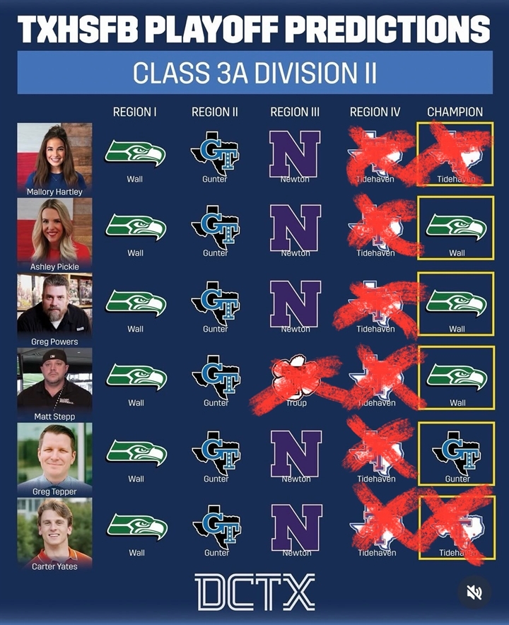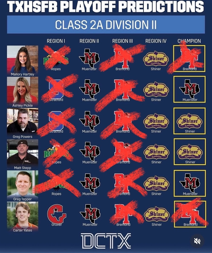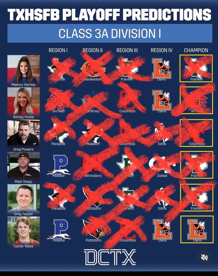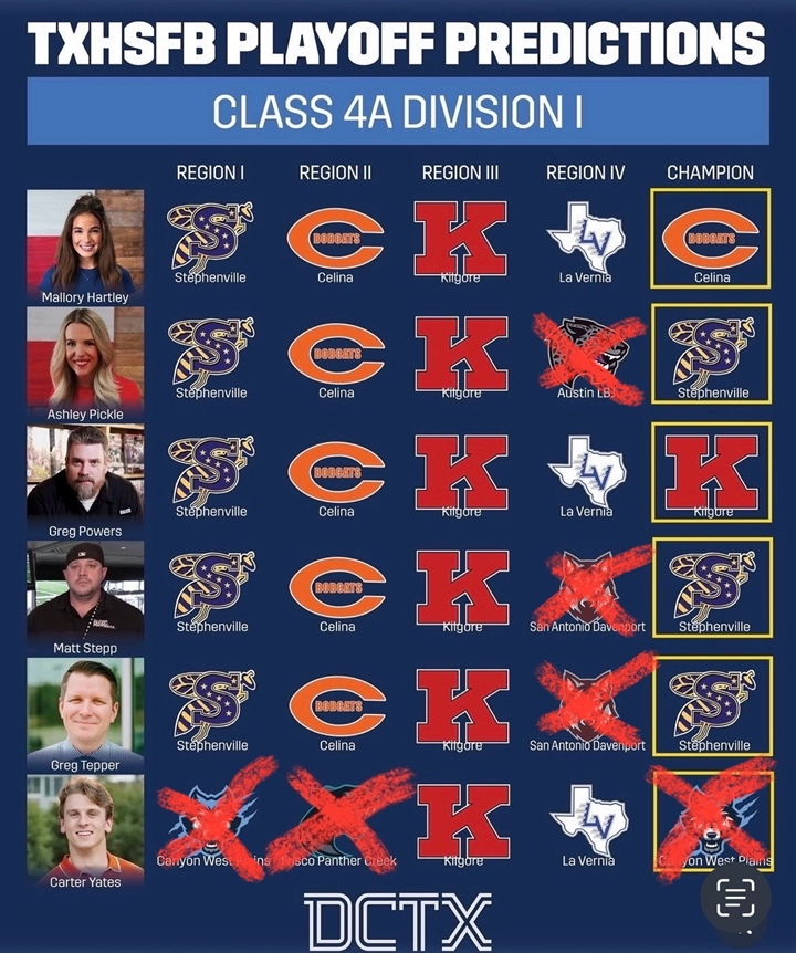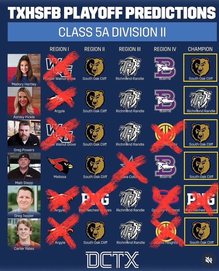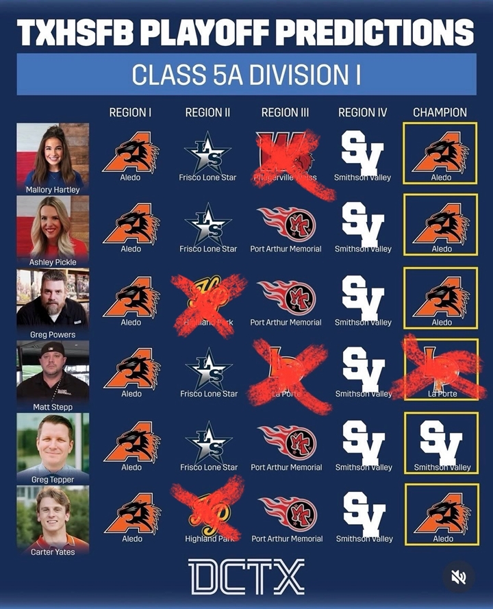 These Regional Championship picks were made at the beginning of the TXHSFB Playoffs