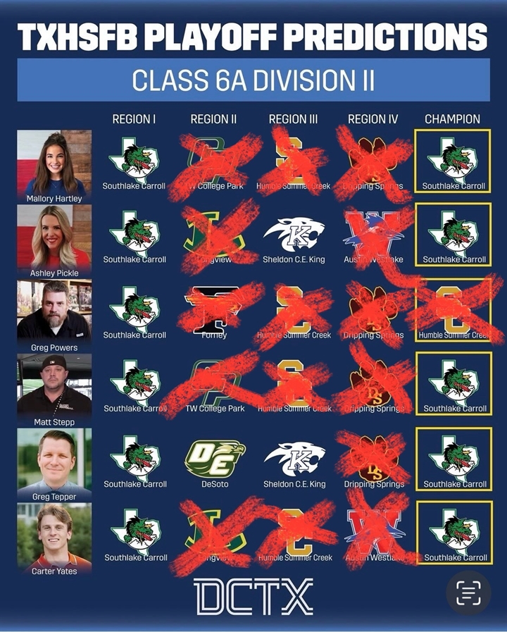 Other than everyone correctly predicting Southlake Carroll to win Region I, the Dave Campbell’s staff went 3-for-18. Yikes.