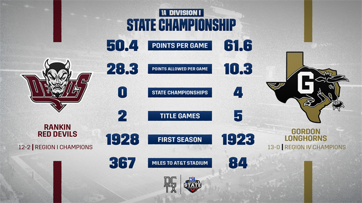 Gordon enters as a heavy favorite and with a chance to stake its claim as an all-time six-man team, but Rankin relishes the underdog role. If the Red Devils’ defense can hang in early, things could get interesting, but the Longhorns look headed for a three-peat.