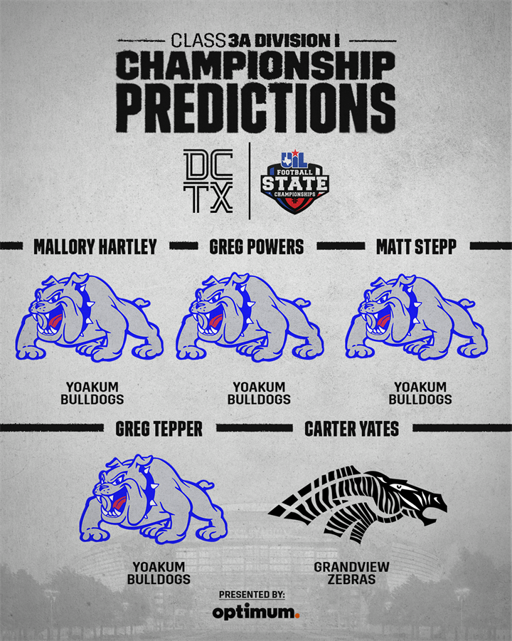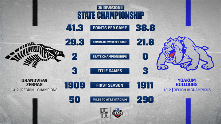 The state’s wildest classification features an unlikely title game of a pair of district runners-up as Grandview, which is seeking their third state title, takes on Yoakum, which is making just their third ever title game appearance.