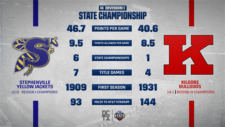 Unbeaten Stephenville will look for a seventh state title as they take on Kilgore, which is back at UIL State for the second straight season.
