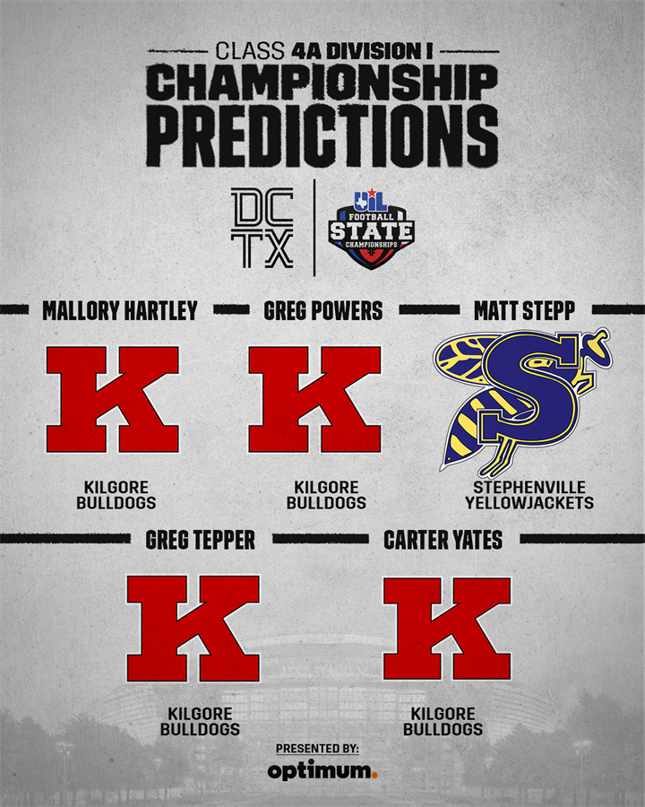 Last year, Kilgore got to this point and got hammered by Celina. They are much-improved this season, but Stephenville’s explosive offense will be the Bulldogs' biggest test since the season opener against Carthage and SHS has an elite group on defense.