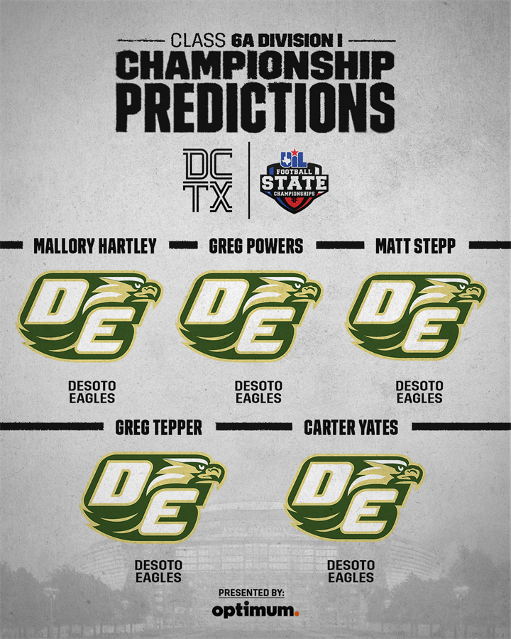 First one to 50 (seriously) may win this game as both teams are absolute juggernauts on offense. The edge here goes to DeSoto. The Eagles' defense has the edge and they’ve been on this stage before. Several seniors played key roles in DeSoto’s 2023 title team and that experience pays off.