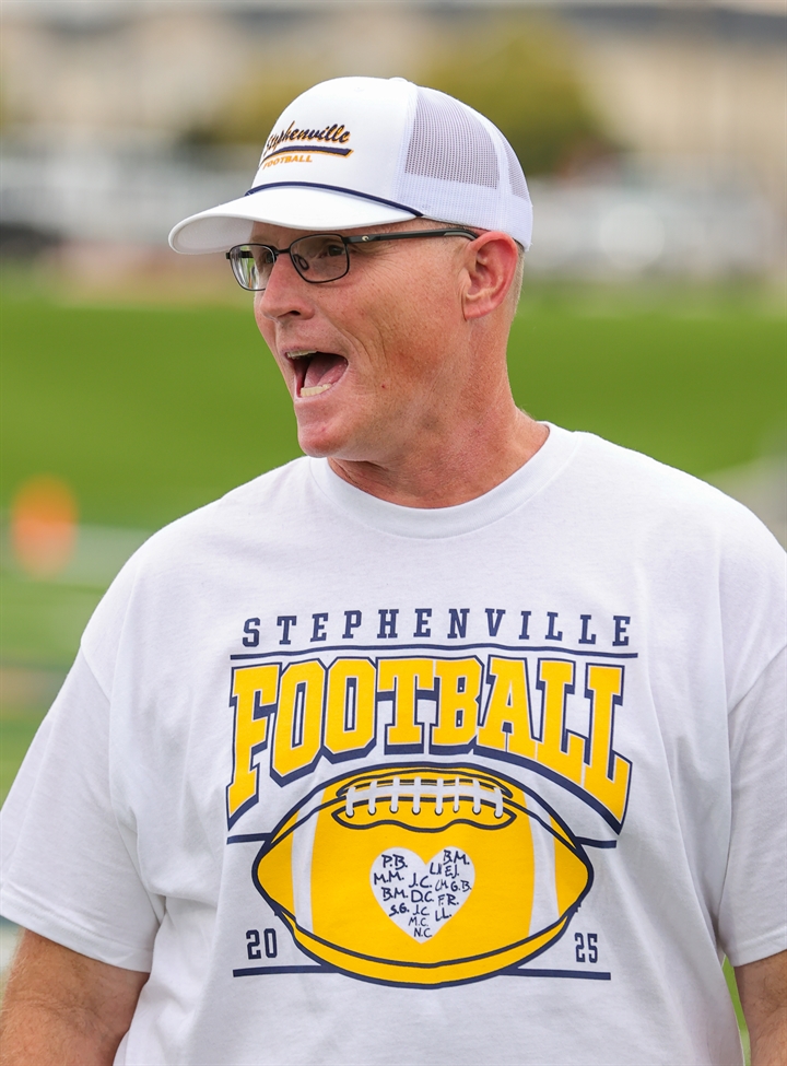 That’s why, every day before dawn when his alarm clock blares, he bounds out of bed. As he scrubs his face, his mind’s already on the upcoming athletic period and how he can do right by this next group of seniors. And when he pats himself dry and looks up, he realizes the expectations in Stephenville haven’t been what’s driving him this whole time.