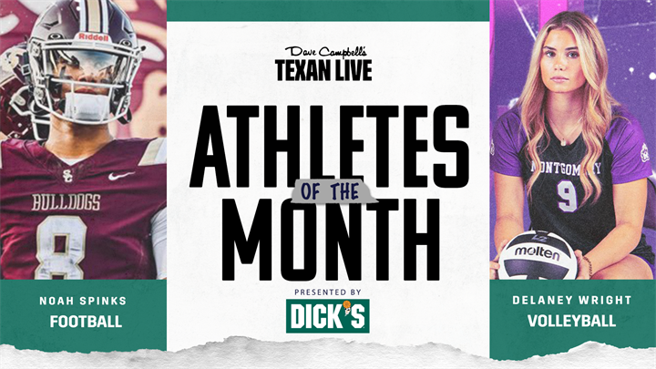 Congratulations to Noah Spinks of Summer Creek High School and Delaney Wright of Montgomery High School on being named the October Texan Live Athletes of the Month presented by Dick's Sporting Goods!