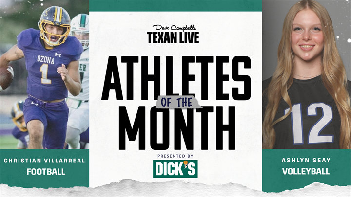 Congratulations to Christian Villareal of Ozona High School and Ashlyn Seay of Byron Nelson High School on being named the September Texan Live Athletes of the Month presented by Dick's Sporting Goods!